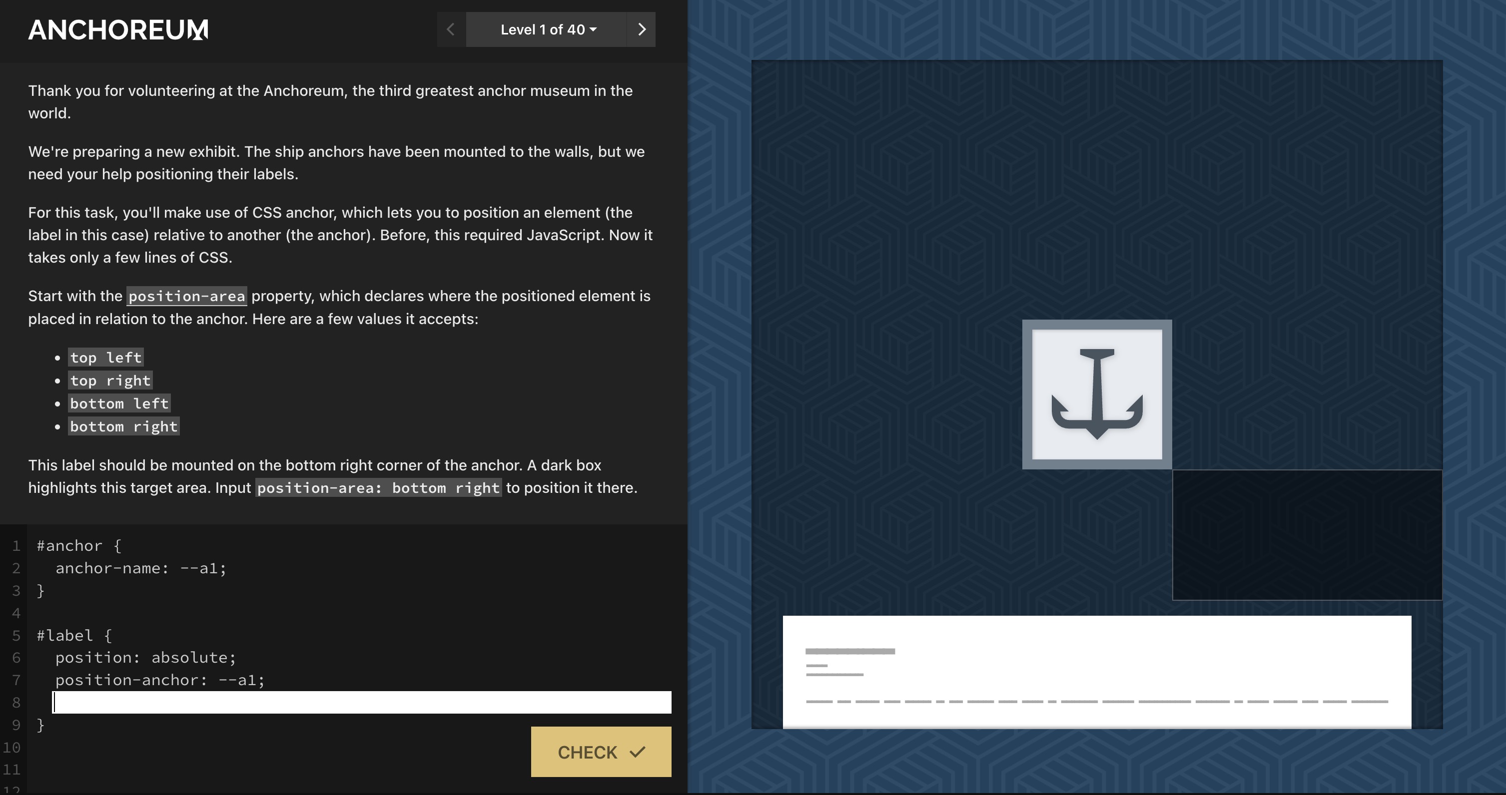 Anchoreum: игра для изучения Anchor Positioning