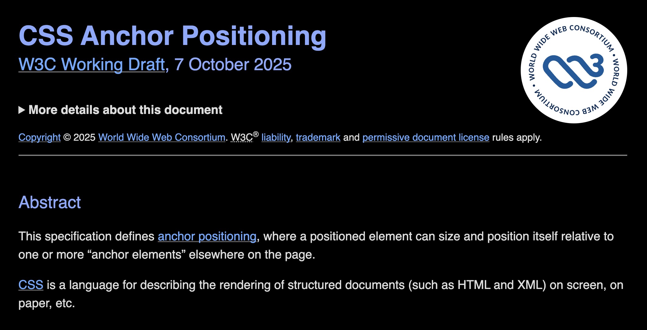 CSS-спецификация: anchor positioning