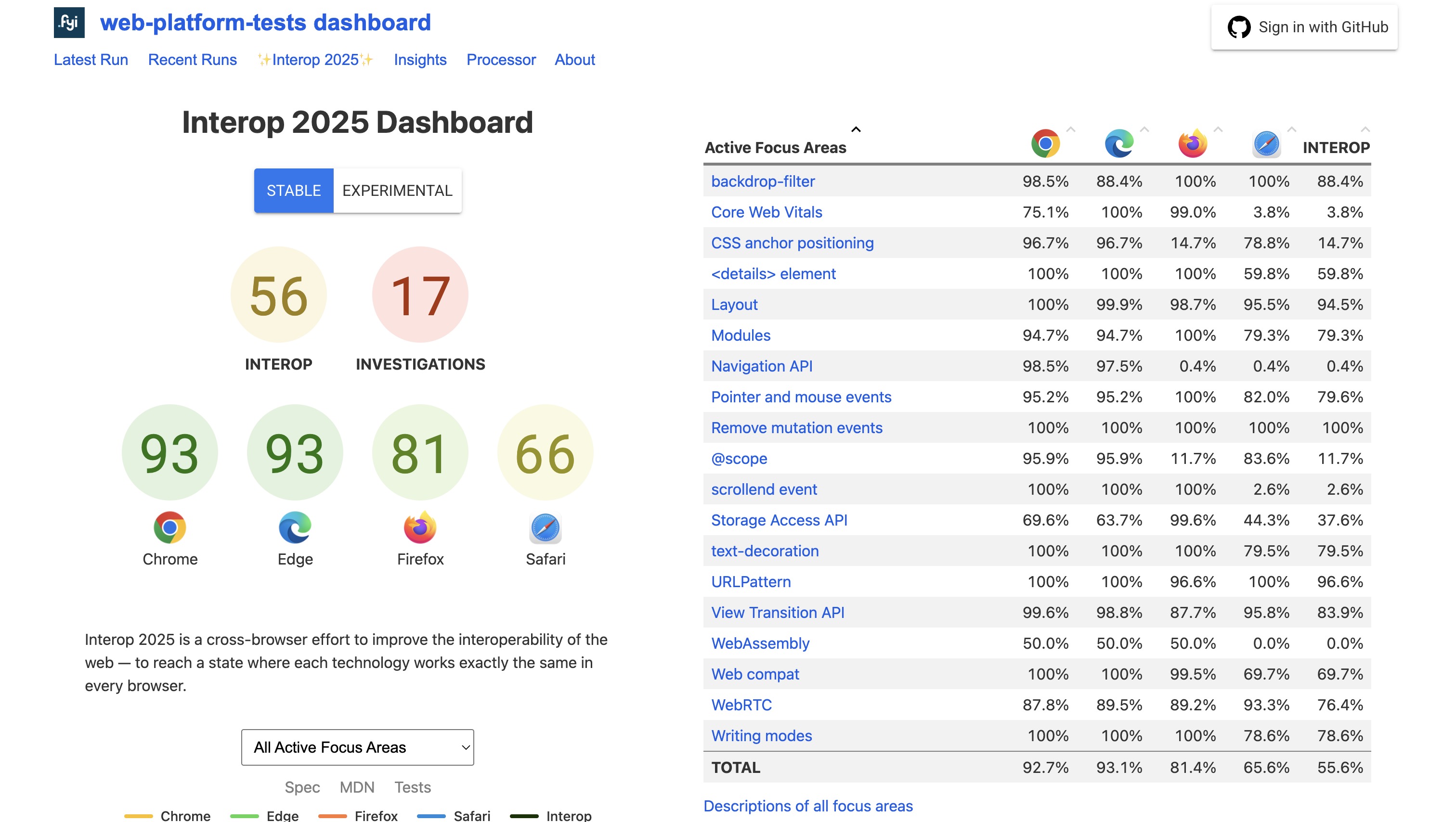 Web platform tests: Interop 2025 Dashboard